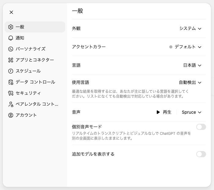 この記事ではChatGPTの設定画面について、詳細を解説しました。設定一覧をまとめ、再掲します。